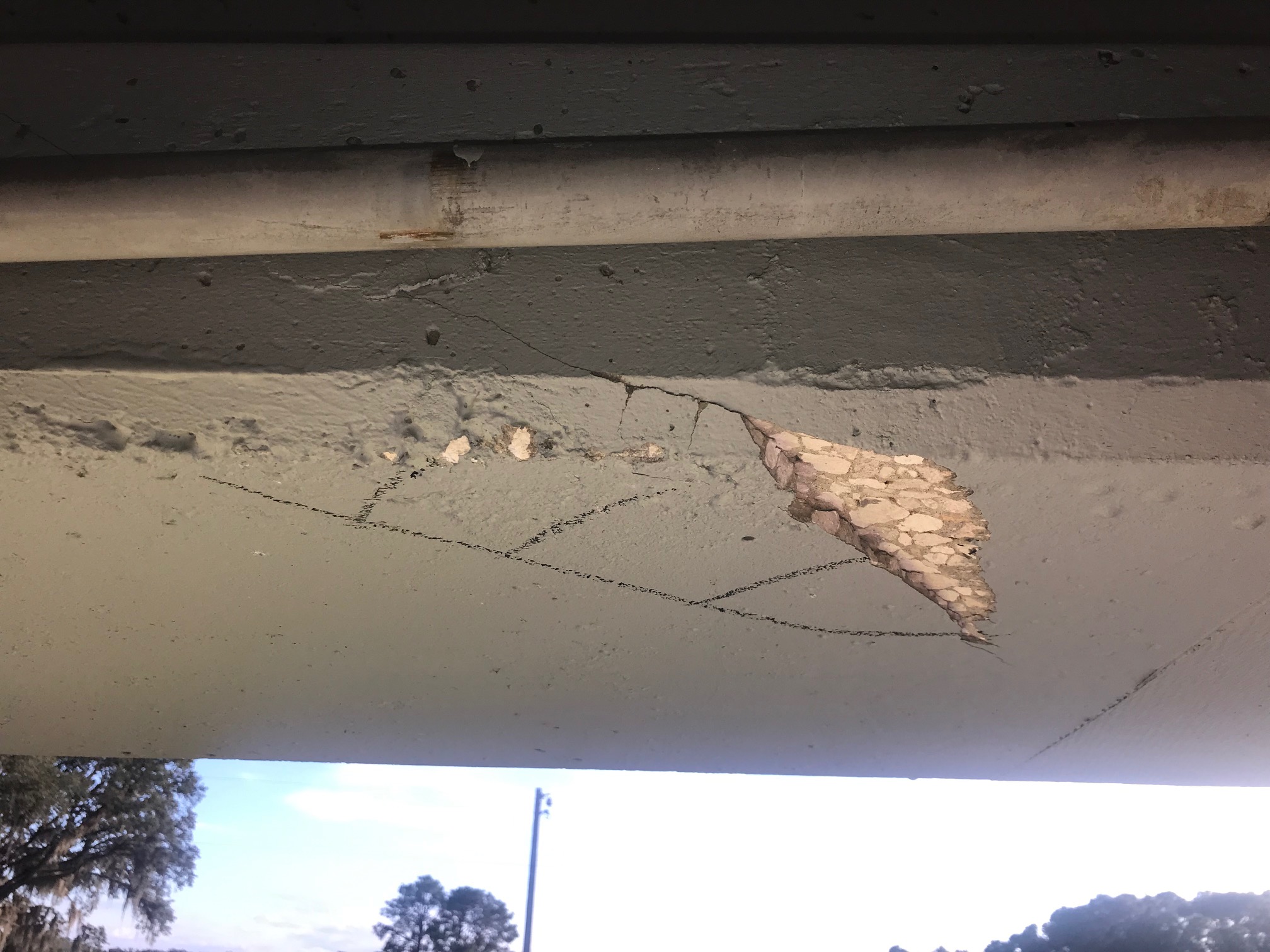 Repair of the CR 514 Bridge over I-75 in Sumterville, Florida was completed by SDR. The bridge was struck by an over-height truck, causing severe damage to the exterior prestressed concrete girders, including rupture of several prestressing strands and a severe loss of concrete.