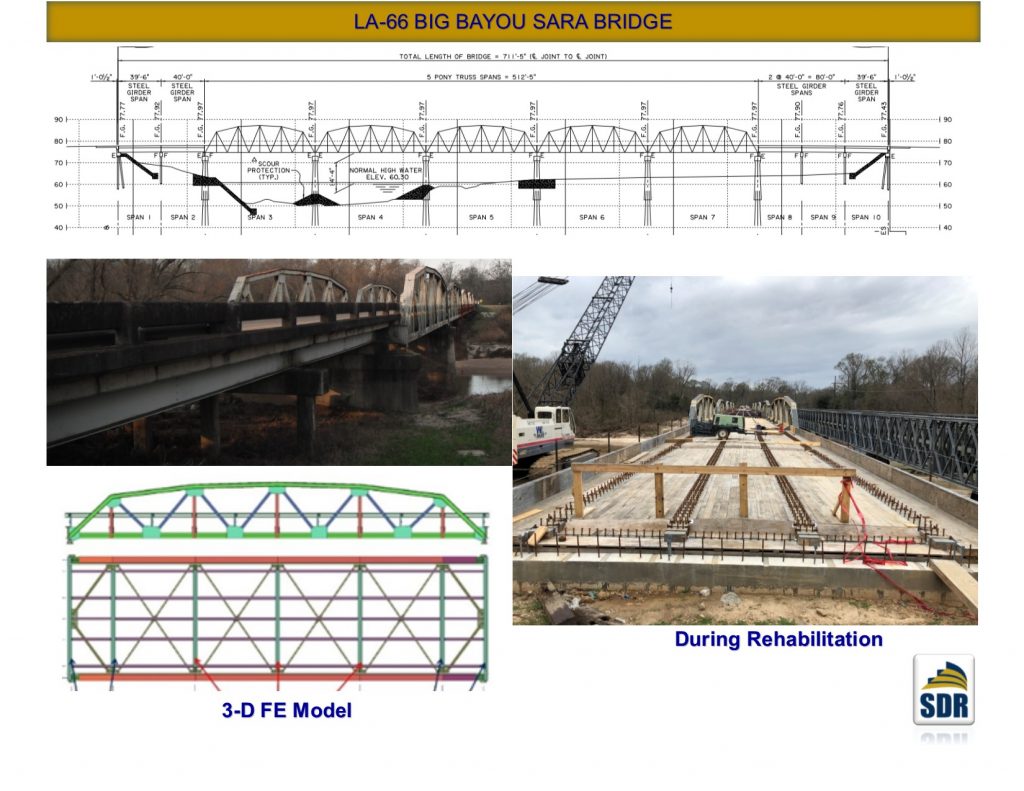 LA DOTD had posted the bridge for a speed limit of 25 MPH and posted load limits of 20T-35T. Based on further concerns LA DOTD assigned SDR with the task of performing a feasibility study on the twin two-lane bridge. SDR performed a thorough document review, hands-on inspection, and surveying to assess the conditions of the bridge. SDR field inspections indicated that the physical condition of the structure ranged from “fair” to “critical,” depending on their location.